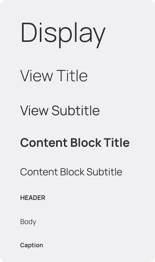 View TitleLight 32px.view-titleUsed for view titles, it's big enough to title an app's view.
